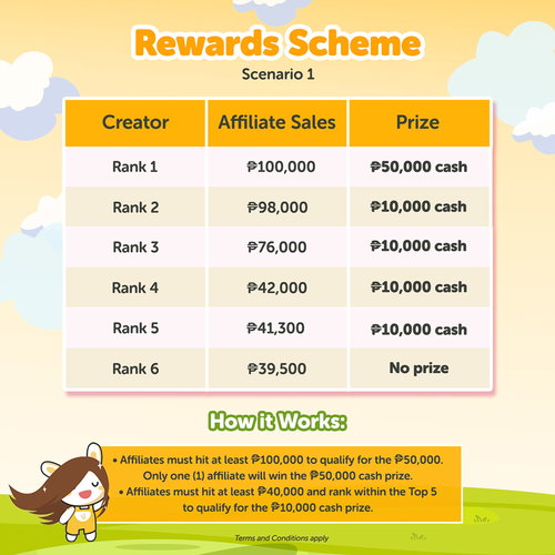 - The TikTok affiliate with the highest sales (minimum Php 100,000) during the campaign period will win Php 50,000 cash.