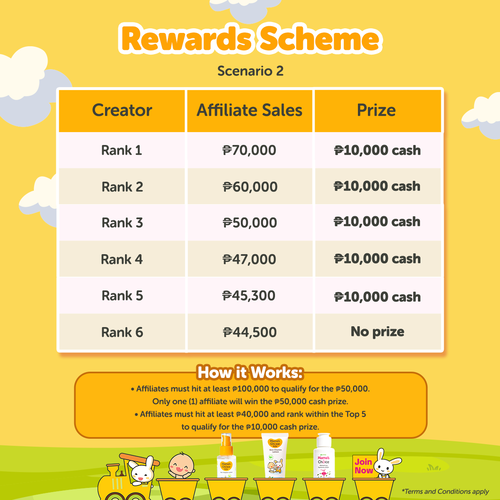 - The Rank 2 – 5 TikTok affiliates with sales of at least Php 40,000 during the campaign period will each receive Php 10,000 in cash.