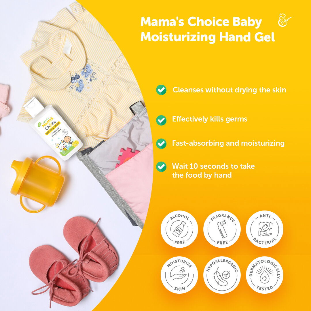 Formulated without alcohol, Mama’s Choice Baby Moisturizing Hand Gel is perfect for mamas and babies as it effectively kills germs and bacteria without irritating the skin.