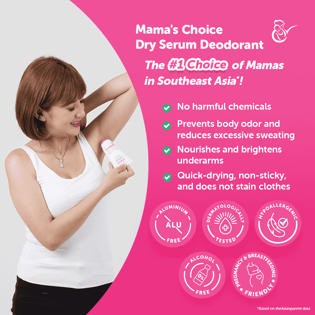 Specially created for pregnant and breastfeeding mamas, Mama’s Choice Dry Serum Deodorant is a pregnancy-safe deodorant that prevents body odor, controls excessive sweating, and brightens dark underarms without the use of potentially harmful ingredients.
